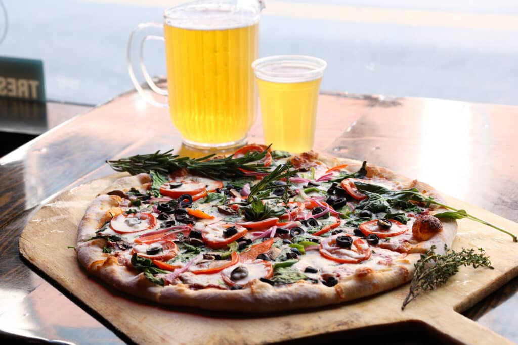 Stop in between bar-hopping for a slice of hand tossed pizza with a pint or pitcher.